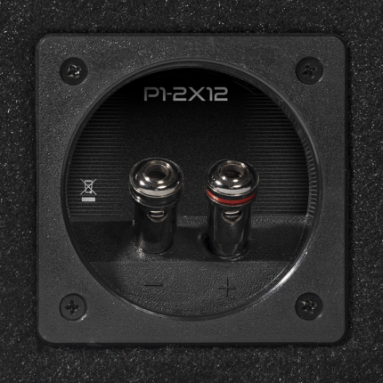 The P1-2X12 is a dual P1 12” vented enclosure with 500 Watts RMS power handling wired to a 2-Ohm load. The enclosure is constructed with 5/8” MDF, covered in high density carpet, and features quick release compression terminals.